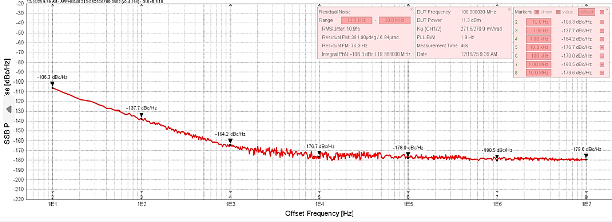 超低相位噪声:-165 dBc/Hz@1kHz